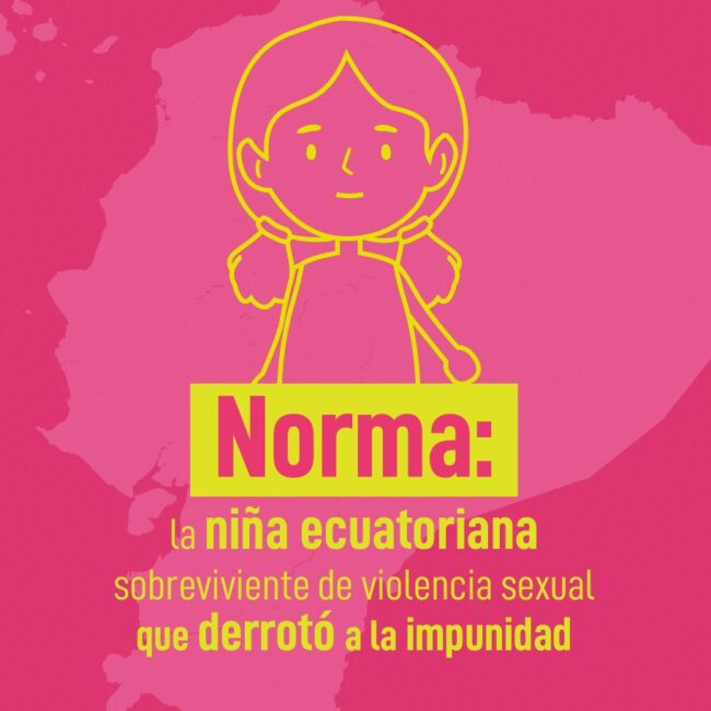 Norma fue víctima de incesto y forzada a la maternidad cuando era niña. Ella decidió interponer una denuncia contra el Estado Ecuatoriano por la vulneración a todos sus derechos, para buscar justicia y prevenir que su historia se repita. Desde Surkuna y otras organizaciones internacionales acompañamos su proceso de denuncia ante el Comité de Derechos Humanos.